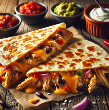 “Whip up this irresistible shredded chicken quesadilla recipe! Packed with Colby Jack, Monterey Jack, black beans, and fresh veggies, this golden, cheesy delight is perfect for quick lunches or family dinners. Pair with salsa or sour cream for a crowd-pleasing, flavor-packed meal. Simple ingredients, bold taste!”